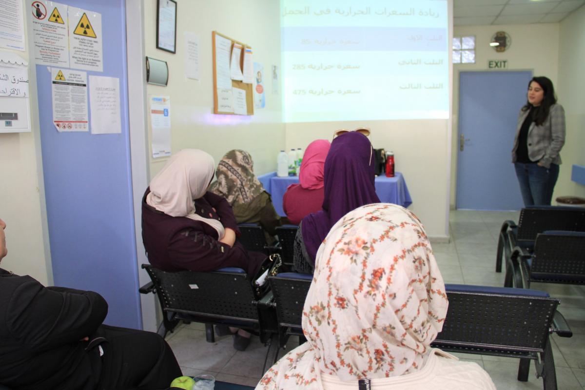محاضرة في مركزالحياة الطبي - بيت حنينا بعنوان التغذية السليمة للنساء اثناء فترة الحمل مع اخصائية التغذية اباء فتحو ، تضمت المحاضرة كيفية توعية المرأة الحامل وتثقيفها بضرورة الحفاظ على صحتها وصحة جنينها من خلال التغذية السليمة وما يحتاجانه من عناصر غذائية للحفاظ على سلامتها وسلامة جنينها ، ويكون ذلك من خلال اتباع نظام غذائي متكامل .