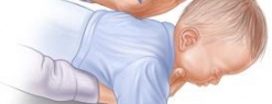 -يفك الرباط حول الرقبة أوالخصر,ويحني رأس االمصاب إلى الامام,ويضرب ضربة عنيفة بين الكتفين ,وإذا لم يجد ذلك نفعاً , يمدد على السرير وراسه متدل للأسفل,ويضرب ثانية بين الكتفين.